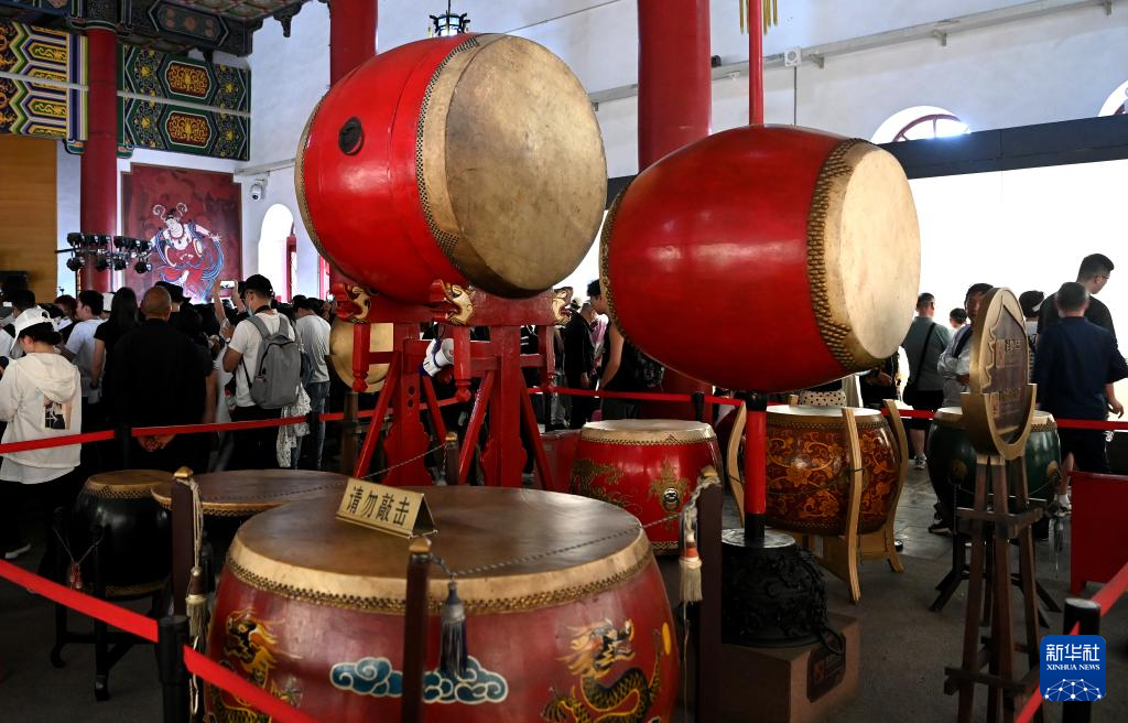 游客在西安鼓樓內觀看演出(5月1日攝)。