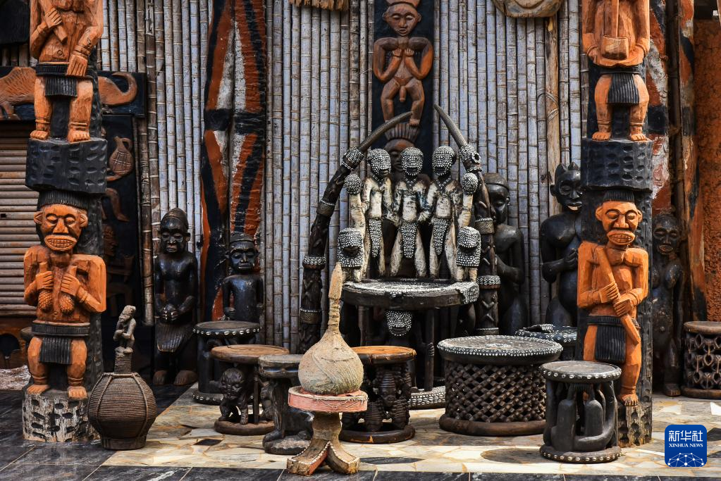 這是4月13日在喀麥隆西部大區拍攝的巴圖方酋邦宮殿內的木制器物。