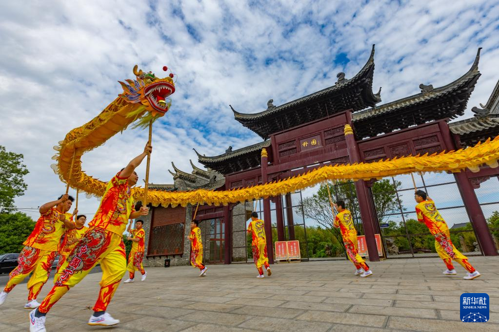 5月7日,江蘇省級非遺項目丁伙龍舞表演隊在江蘇省揚州市江都區丁伙鎮樸園表演。