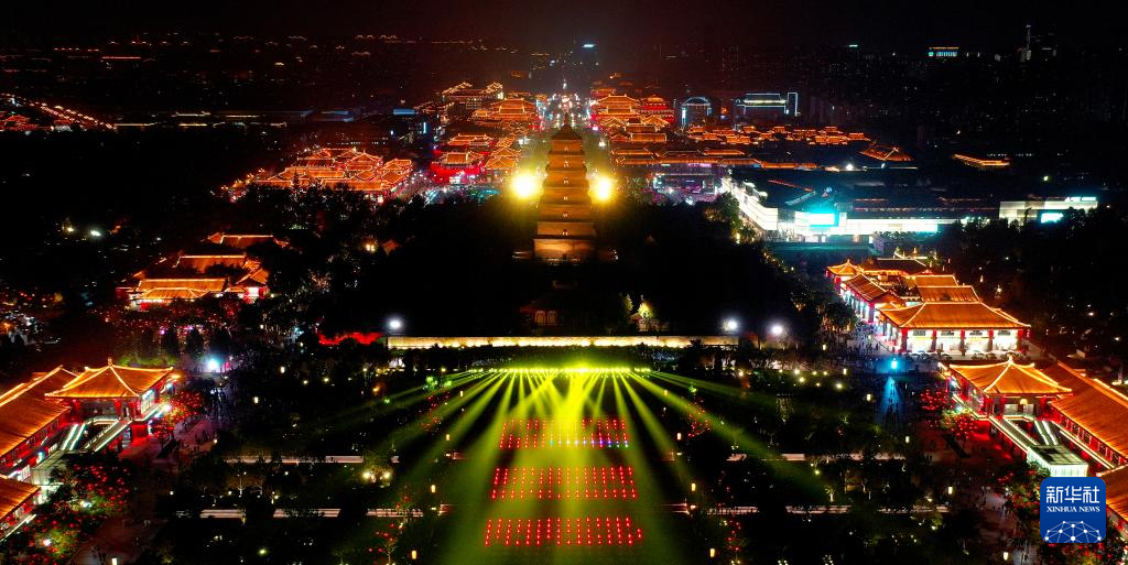 西安大雁塔周邊夜景(4月18日攝,無人機照片)。