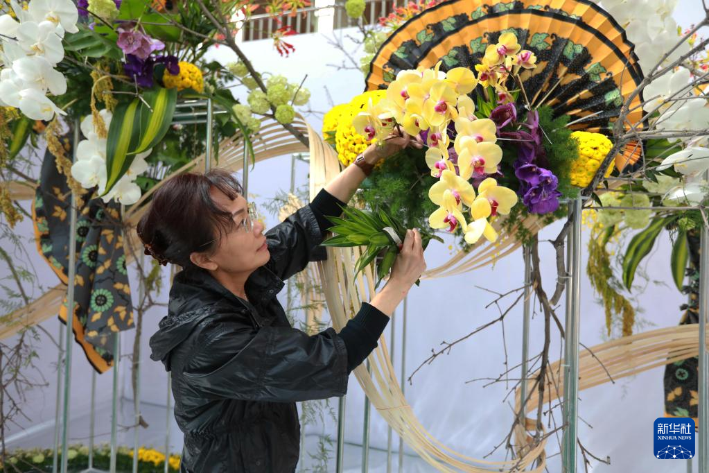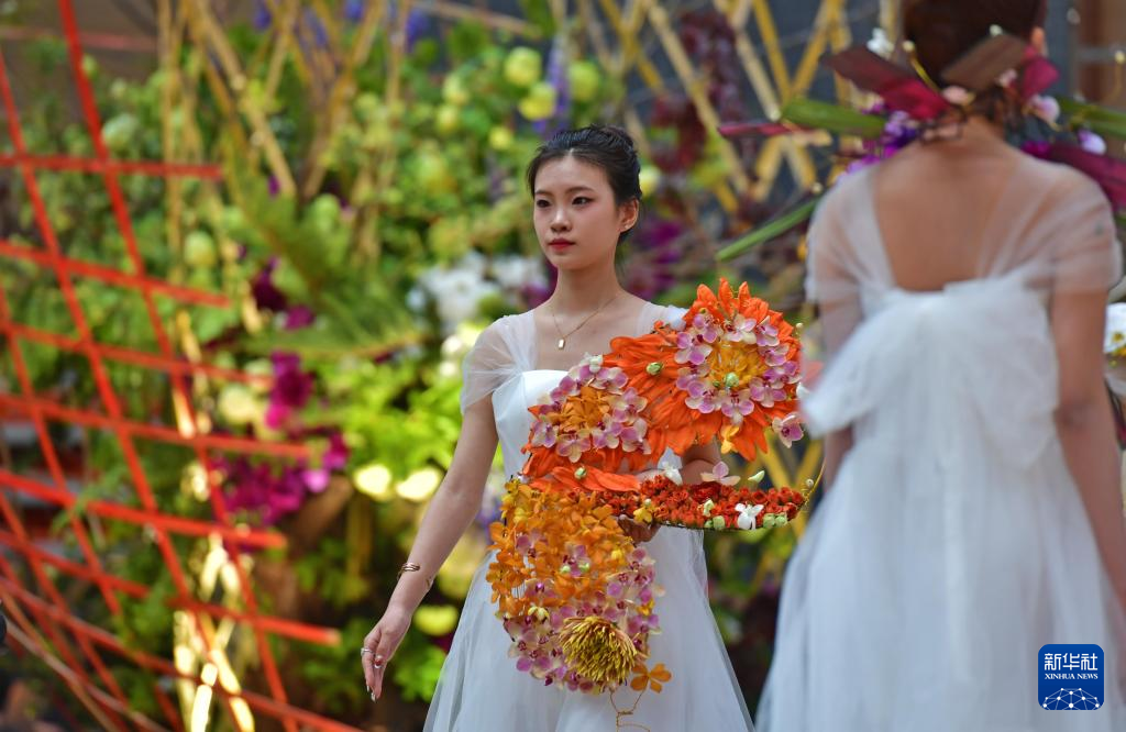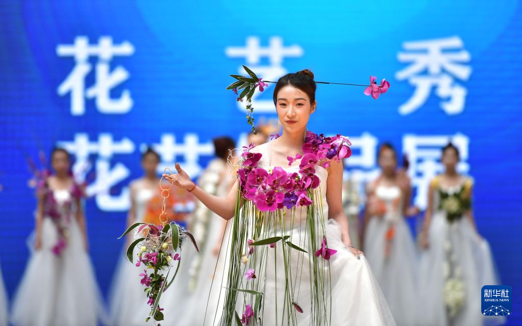 5月10日,遼寧農業職業技術學院學生進行花藝秀展示。