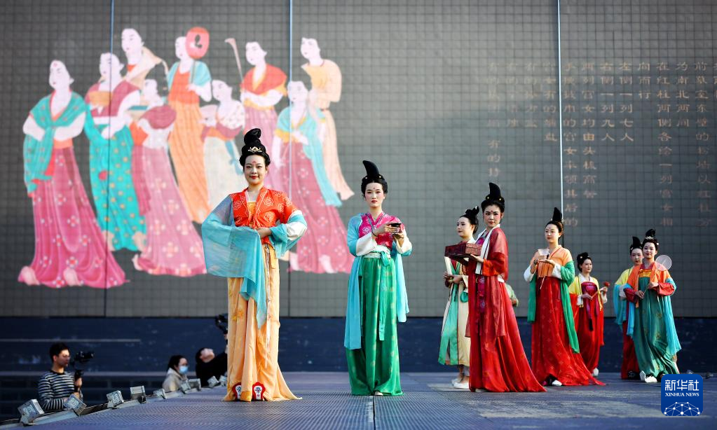 西安大唐不夜城進行的華服走秀(4月25日攝影)。