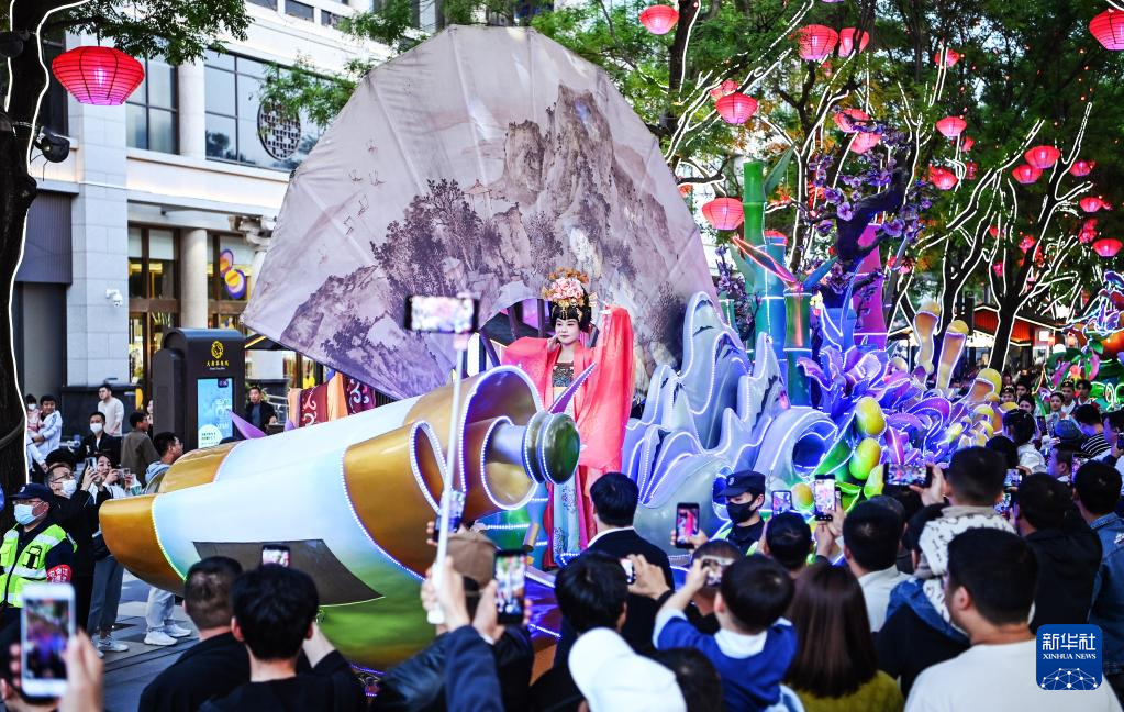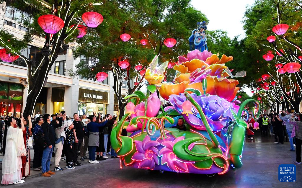 西安大唐不夜城進行的花車巡游(4月25日攝影)。