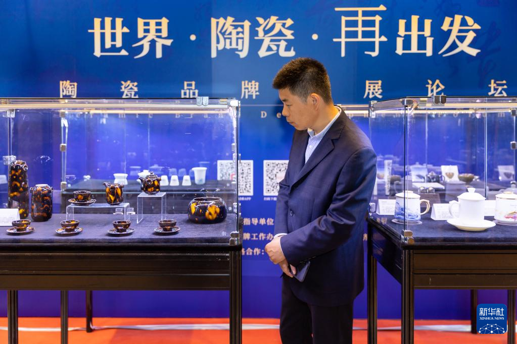 5月10日,參觀者在“世界·陶瓷·再出發 陶瓷品牌發展論壇”現場觀看展出的吉州窯。