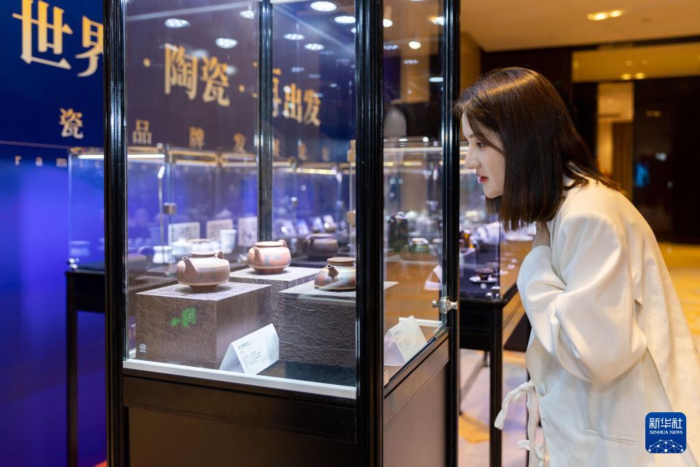 5月10日,參觀者在“世界·陶瓷·再出發 陶瓷品牌發展論壇”現場觀看展出的陶瓷。