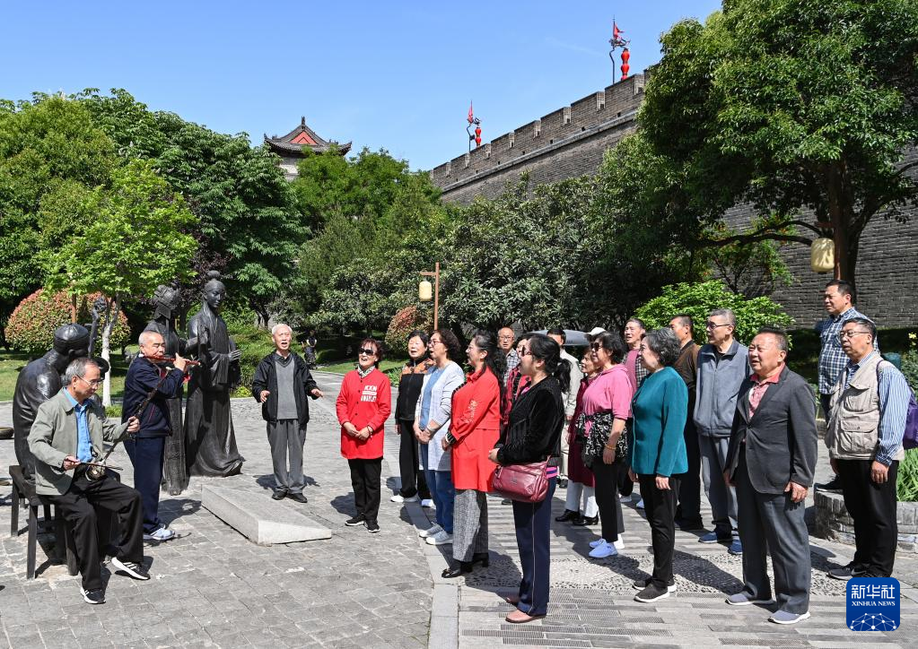 2023年5月12日,西安市清風合唱團在西安城墻下的環城公園演唱歌曲《八百里大秦川》。