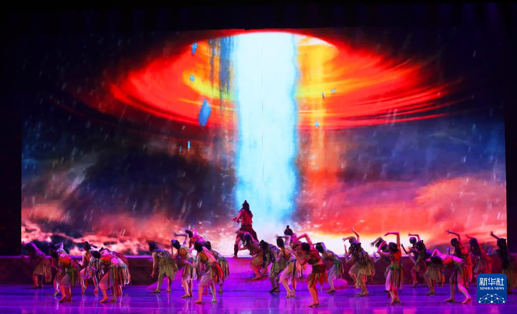 當日,由甘肅省天水市歌舞藝術研究中心創排的大型舞劇《一畫開天》在蘭州音樂廳上演。該舞劇運用現代舞臺藝術的形式演繹了伏羲女媧攜手創世、肇啟中華文明的過程。