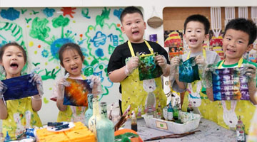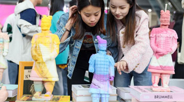 5月18日,市民在犀牛尊素胚上涂色。犀牛尊以國博館藏重器“錯金銀云紋青銅犀尊”為原型。