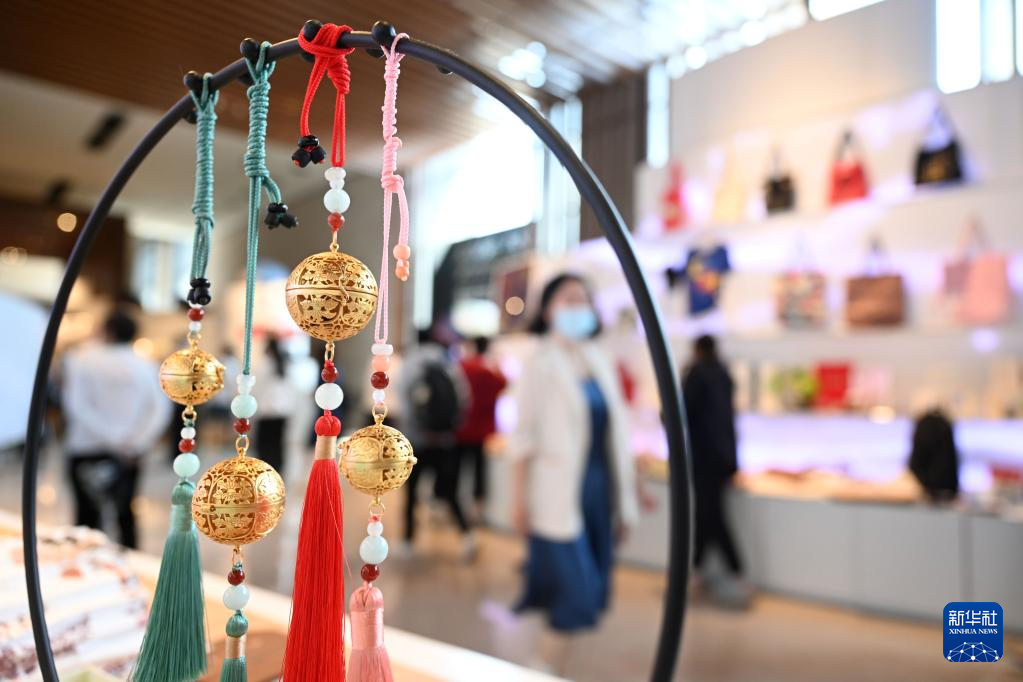 這是國博文創體驗區擺放的香囊(5月18日攝)。