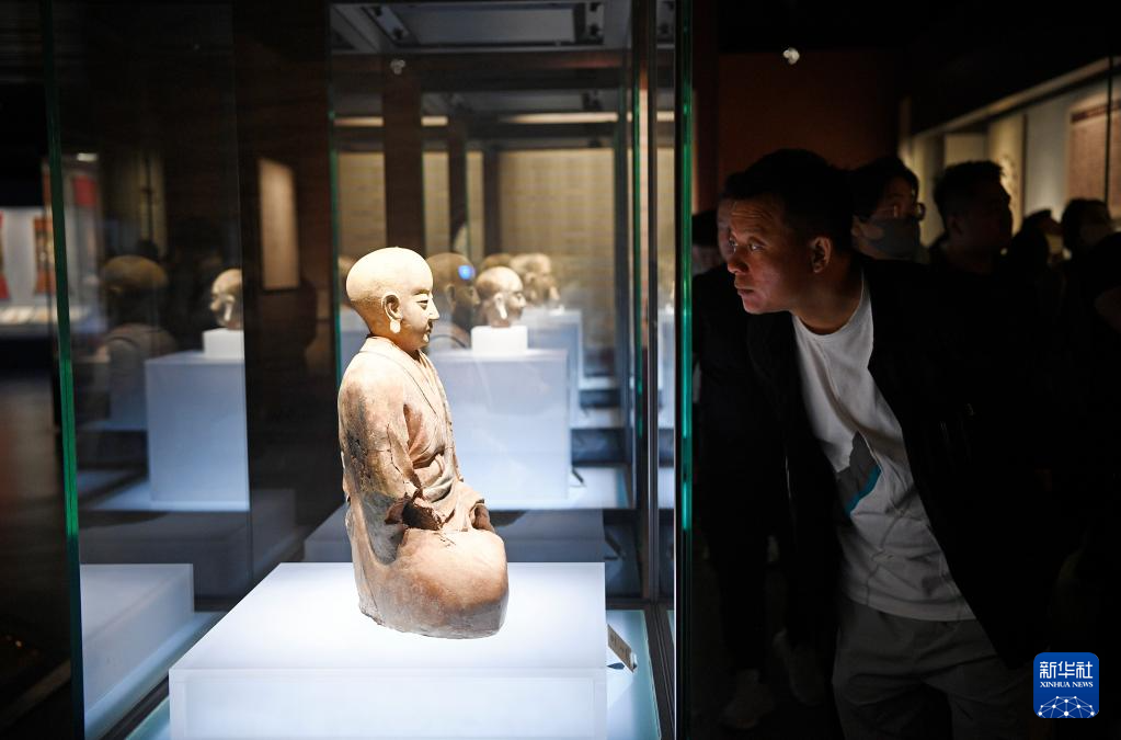 5月18日,游客在西夏博物館欣賞展出的西夏文物。