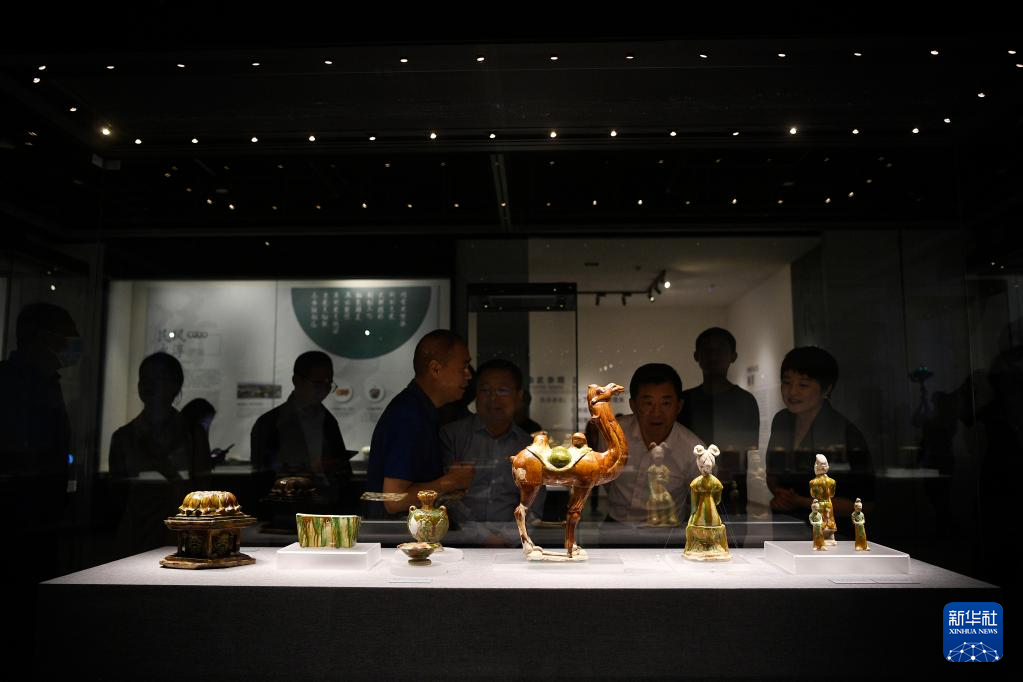 圖為西夏博物館展出的唐三彩披泥障馬(5月18日攝)。