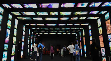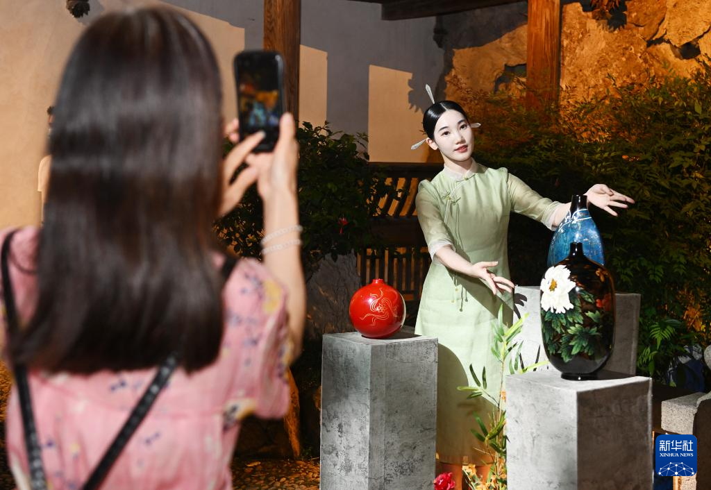5月18日,觀眾在福州市三坊七巷歷史文化街區參觀拍攝傳統漆器工藝品的沉浸式實景展示。