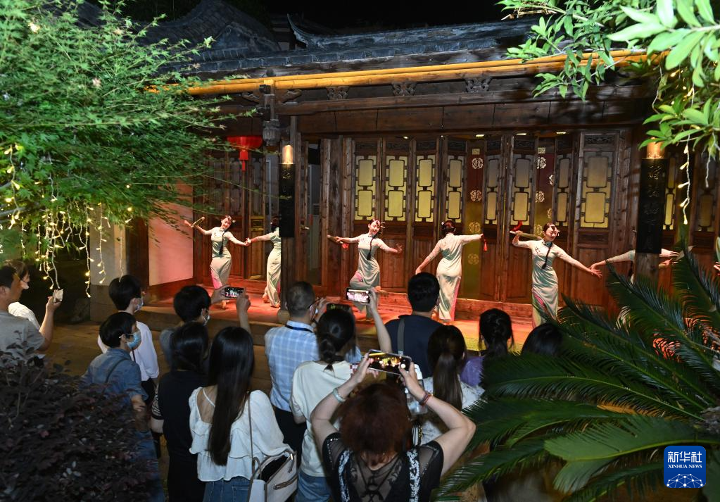 5月18日,觀眾在福州市三坊七巷歷史文化街區參觀沉浸式實景演出。