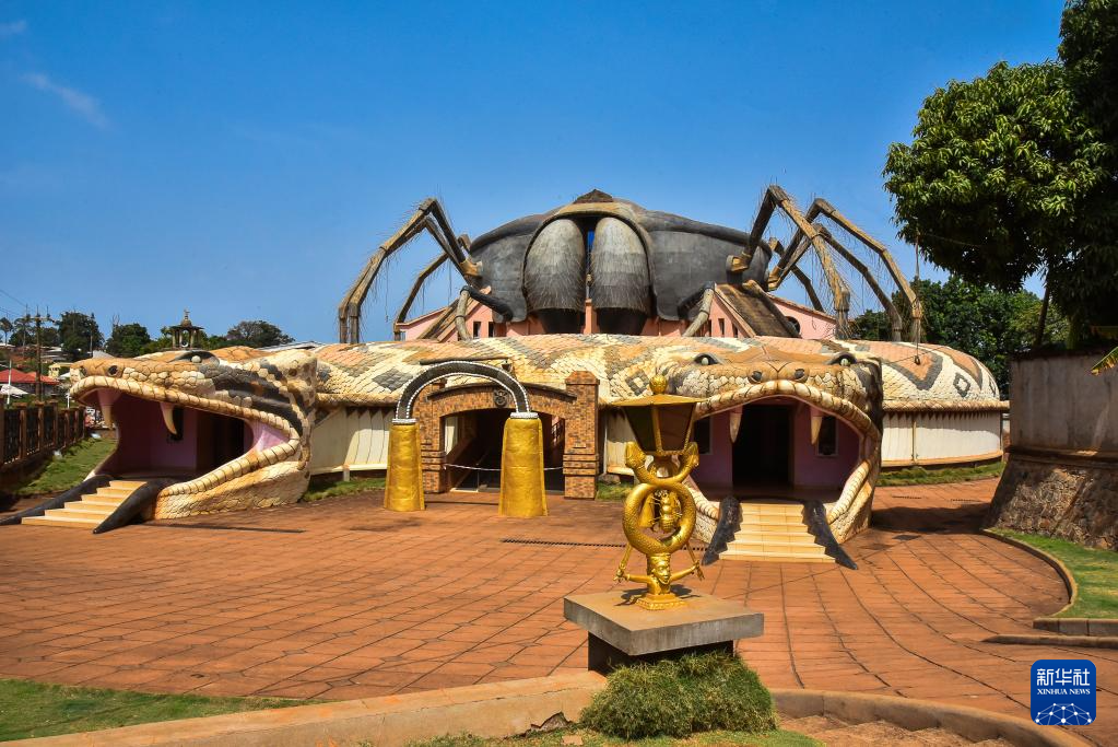 這是4月12日在喀麥隆西部大區豐班拍攝的根據巴蒙象征“雙頭蛇、蜘蛛和雙鑼”修建的新博物館——巴蒙國王博物館。