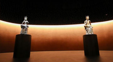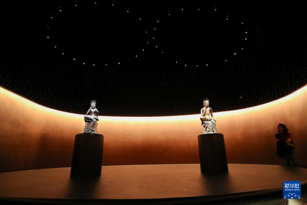 5月18日,在韓國首爾國立中央博物館,游客在思惟展廳參觀韓國國寶“半跏思惟像”。