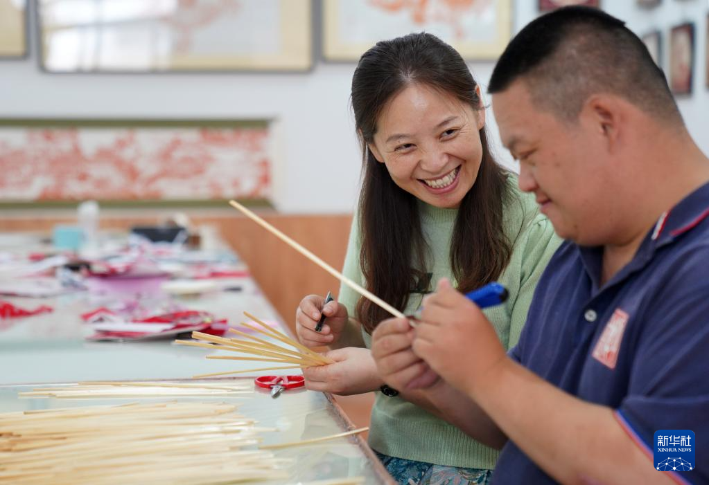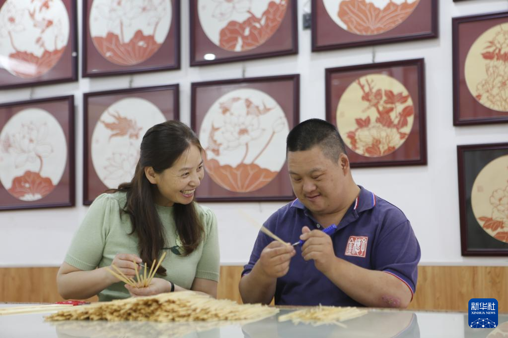 夫妻倆推行殘疾人就業項目,每年拿出收入的20%作為傳承經費,包吃包住免費向殘疾人傳授蘆葦畫手工技藝。據介紹,公司至今累計培訓學員9000多人次,已發展成“國家級殘疾人非遺傳習基地”“國家級殘疾人文化創意產業基地”。