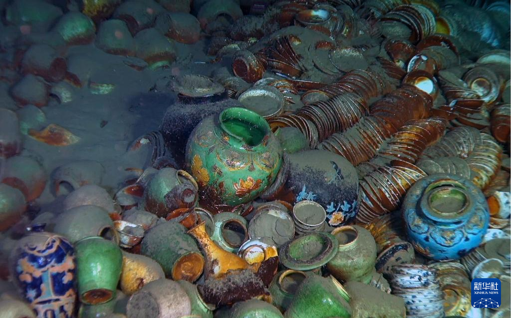 據國家文物局考古司司長閆亞林介紹,其中一處定名為南海西北陸坡一號沉船,有多個疑似被船艙分隔開的成堆文物,最大高度達3米多,文物以瓷器為主,散落范圍達上萬平方米,推測數量超過十萬件,根據出水文物初步判斷為明代正德年間。另一處定名為南海西北陸坡二號沉船,發現大量原木,尺寸相近、碼放整齊,大多經過簡單加工,初步研判是從海外裝載貨物駛往中國的古代沉船,初步判斷為明代弘治年間。