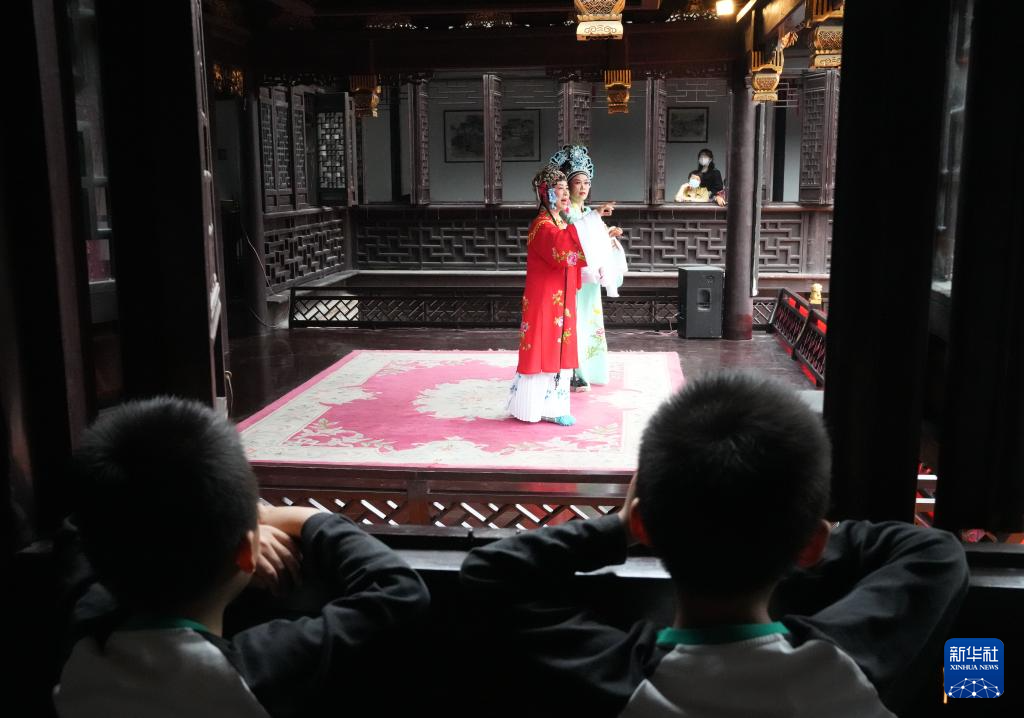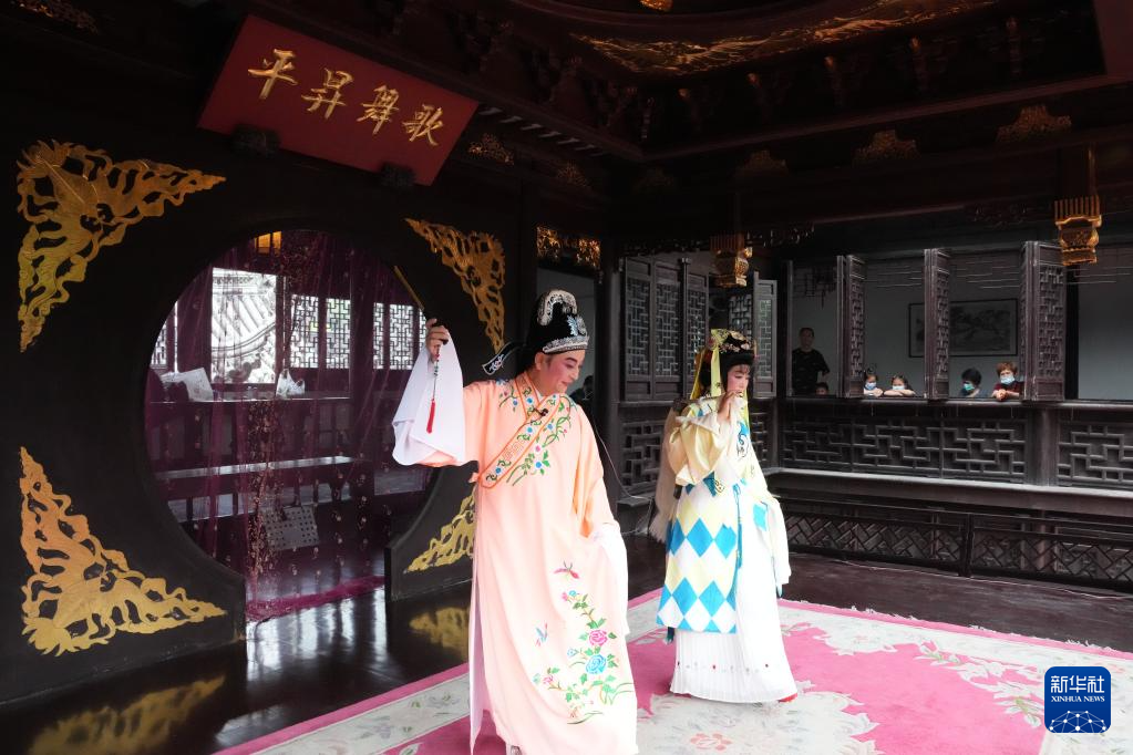 5月21日,在盛澤鎮先蠶祠,演員在舞臺上演出。