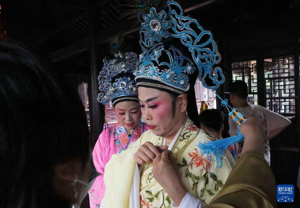 5月21日,在盛澤鎮先蠶祠,演員在準備演出。