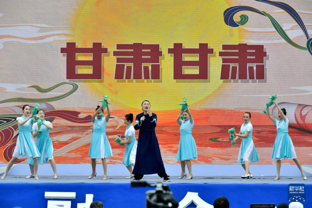 5月24日,演員在啟動儀式上表演裕固族歌舞《甘肅等你來》。