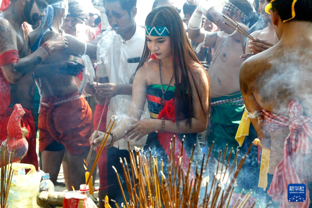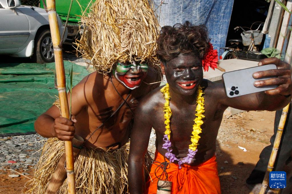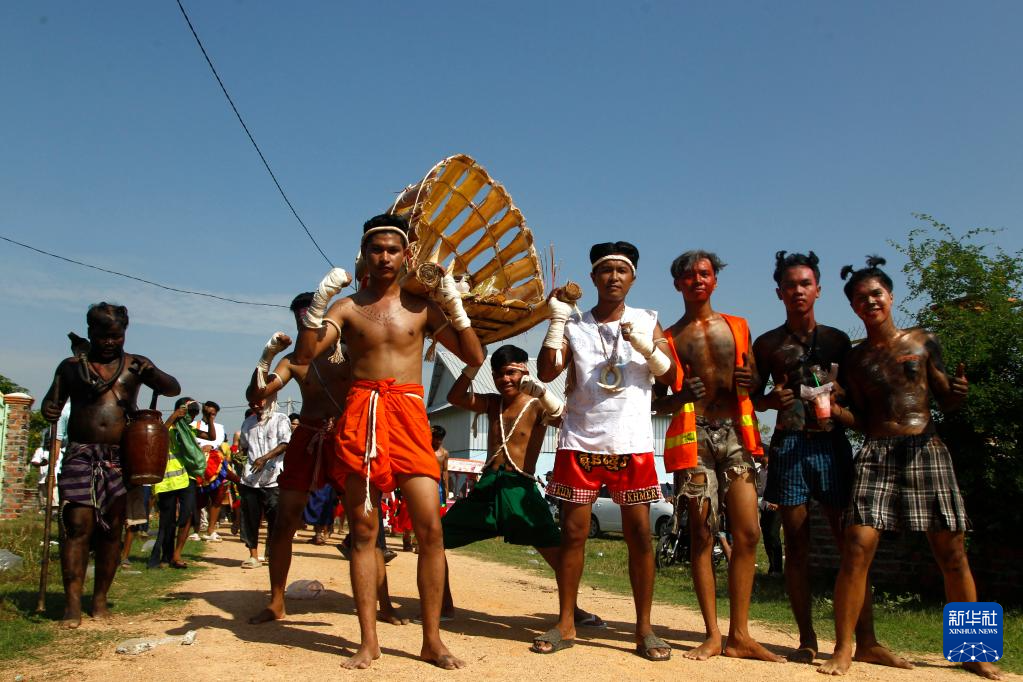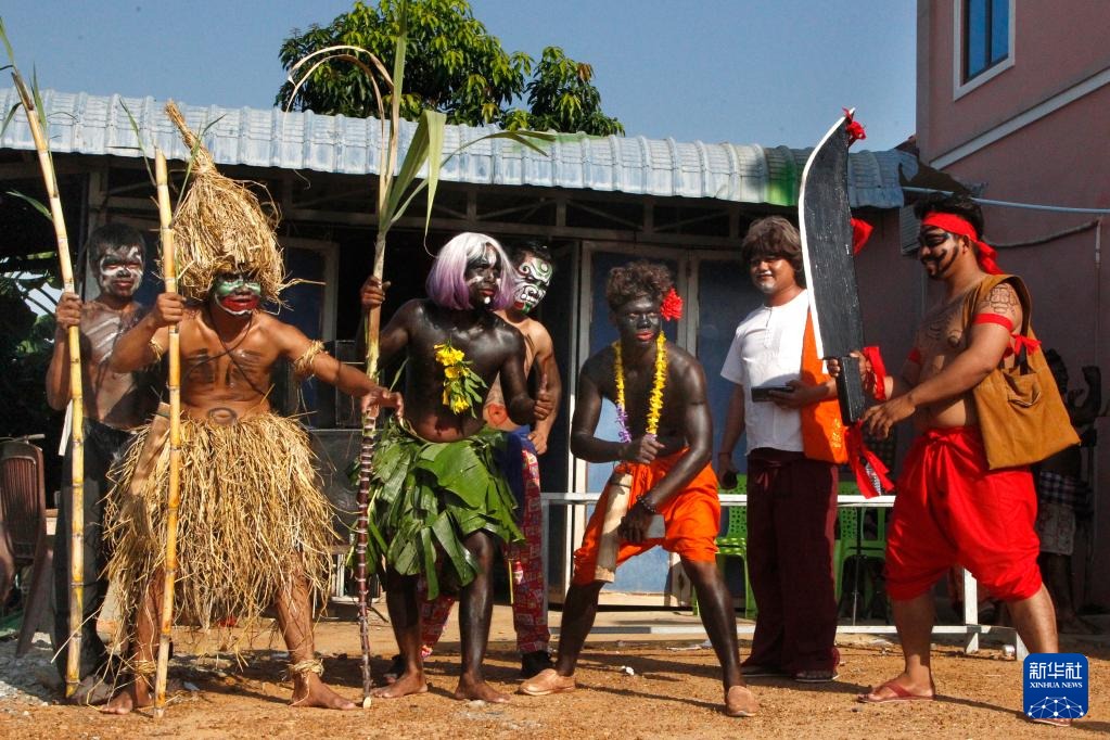 柬埔寨24日舉辦了一年一度的雨神節。雨神節是柬埔寨有幾百年歷史的傳統慶?;顒?,在每年雨季初期舉行,這一天人們在臉上和身體上作畫,并穿上草裙,祈求風調雨順,人畜興旺。