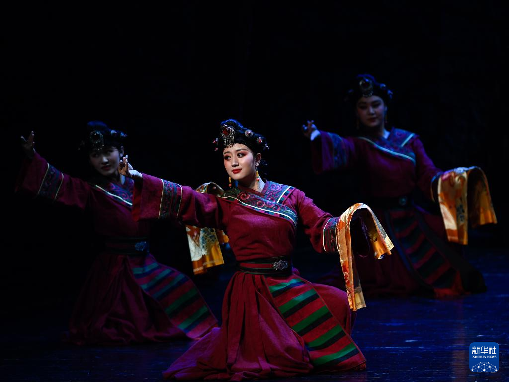 5月24日晚,演員在青海大劇院表演大型藏戲《金城公主》。
