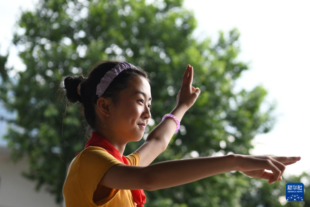 5月29日,伏嶺鎮中心小學“徽劇童子班”學生王玉琴在進行徽劇展演前的排練。