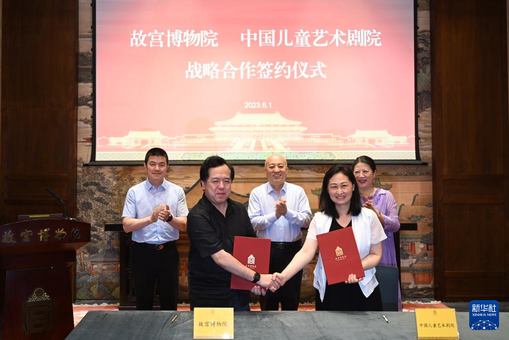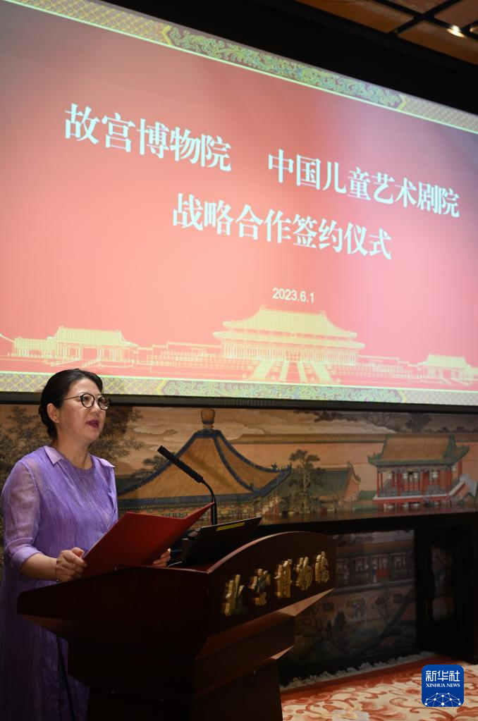 當日,故宮博物院與中國兒童藝術劇院在北京舉行戰略合作簽約儀式。雙方將在劇目創排、打造品牌、文創產品開發等方面加強合作,攜手打造以故宮為題材的兒童戲劇精品,利用舞臺藝術形式,讓中華優秀傳統文化走進中國孩子的心里,也讓更多少年兒童走進故宮博物院,走進中國兒童劇場。
