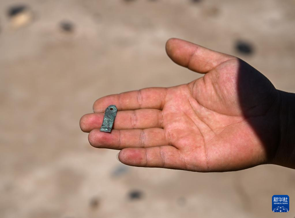 這是額濟納旗文物保護中心工作人員在巡護中發現的銅片(6月2日攝)。
