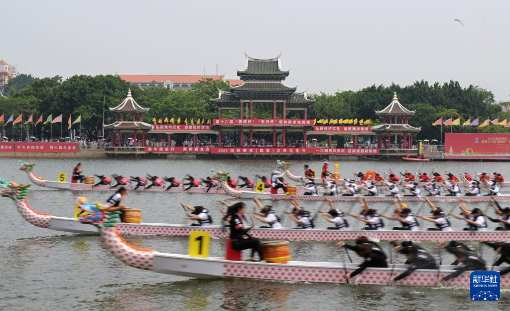 當日,2023海峽兩岸(集美)龍舟文化節暨第十六屆“嘉庚杯”“敬賢杯”海峽兩岸龍舟賽在廈門集美龍舟池啟幕。來自海峽兩岸的47支龍舟隊伍在競賽中享受龍舟競渡的活力、中華傳統文化的魅力,共有約500名臺胞參與賽事。