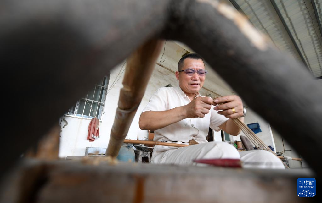 6月1日,在廣西賓陽縣賓州鎮陸村,陸云崗在制作油紙傘。