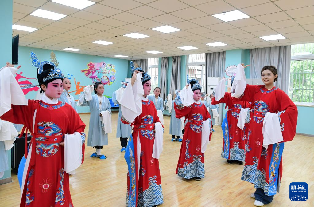 近年來,安徽省合肥市肥西縣桃花鎮依托社區新時代文明實踐站積極開展文化傳承特色活動,通過設立黃梅戲興趣班,聘請戲曲老師免費為轄區小朋友進行黃梅戲教學輔導,讓孩子們感受傳統戲曲的魅力。
