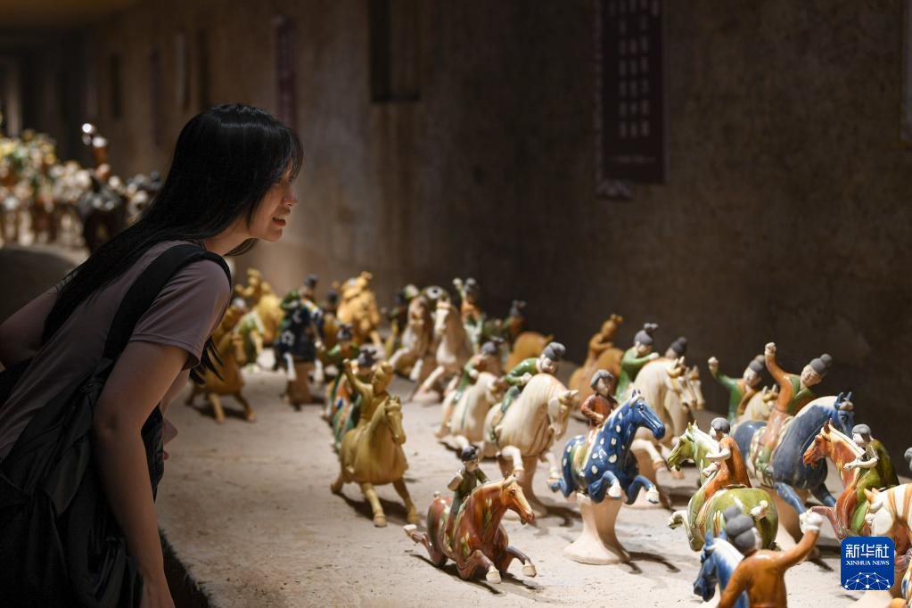 6月6日,游客在南石山村的唐三彩作品陳列展示館內參觀。