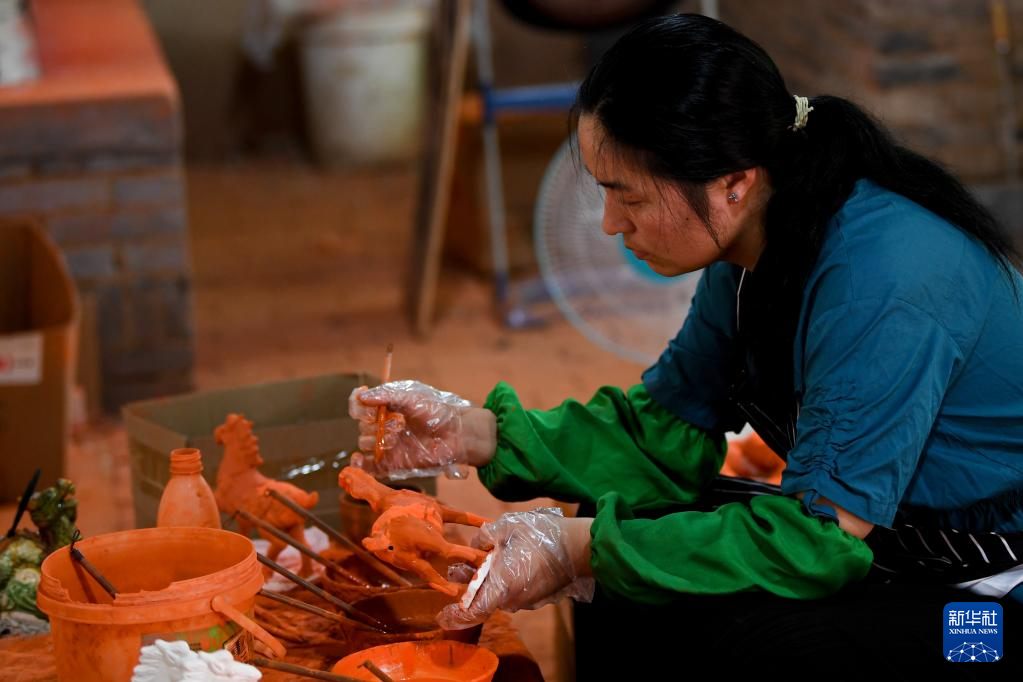 河南省洛陽市朝陽鎮南石山村以生產唐三彩而聞名。近年來,當地政府積極引導三彩產業數字化建設工作,推動唐三彩燒制技藝傳習館、唐三彩陶藝博物館、唐三彩文化研學所等優化升級。目前,南石山村唐三彩產業的專業燒制藝人有2000余人、文化企業68家,年產值達3.5億元。