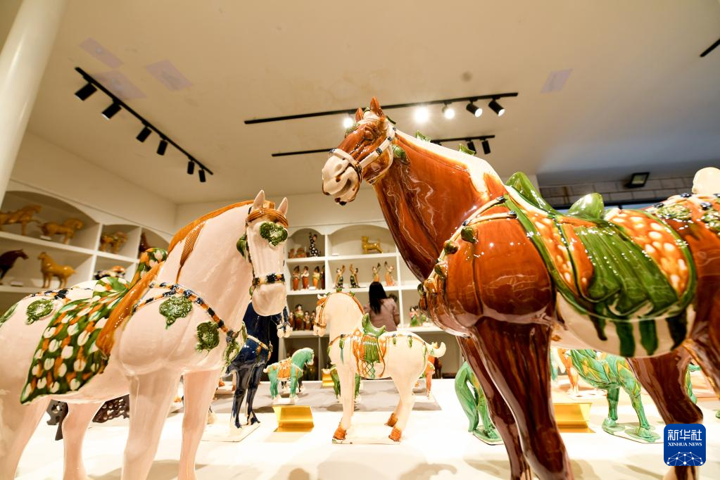 6月6日在南石山村拍攝的唐三彩作品陳列。