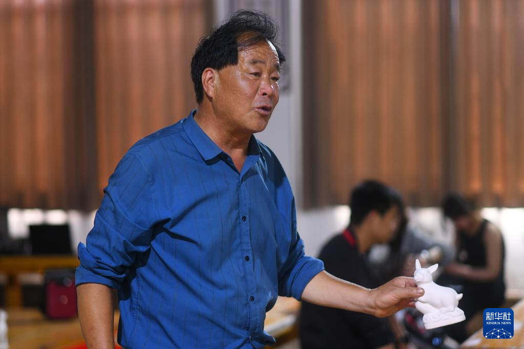 6月6日,省級美術工藝大師張二孬在南石山村的唐三彩文化研學所為學生講解施釉注意事項。