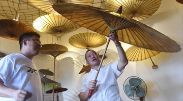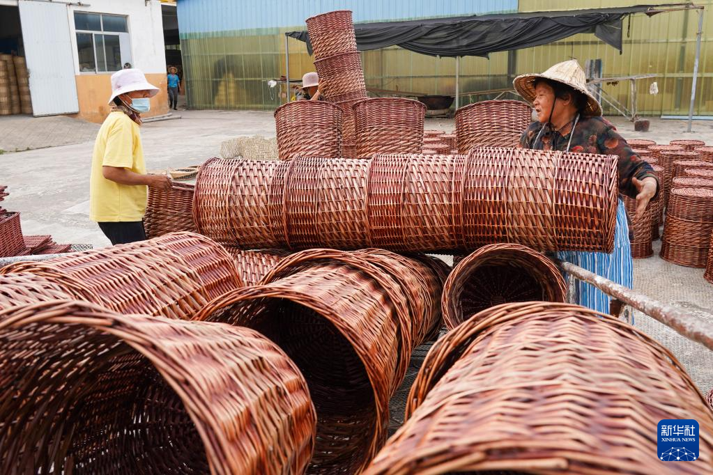 6月6日,臨沂金柳工藝品有限公司員工在晾曬柳編產品。