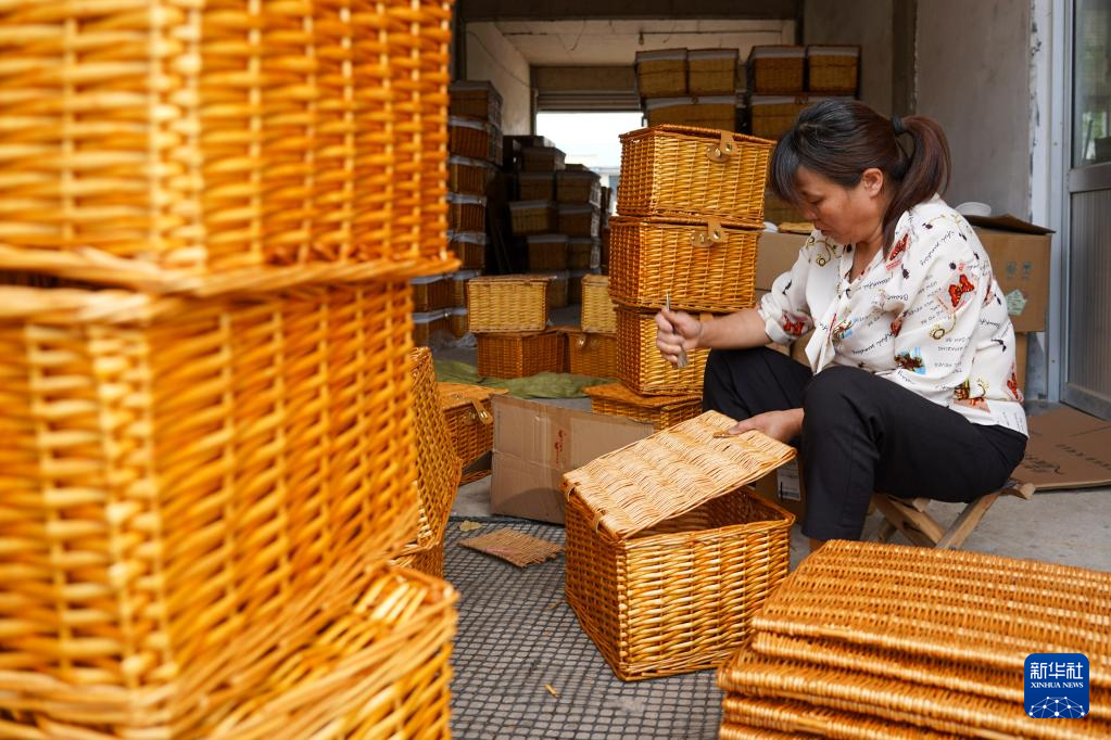 6月6日,臨沭縣青云鎮西朱崔村居民在加工點生產柳編產品。