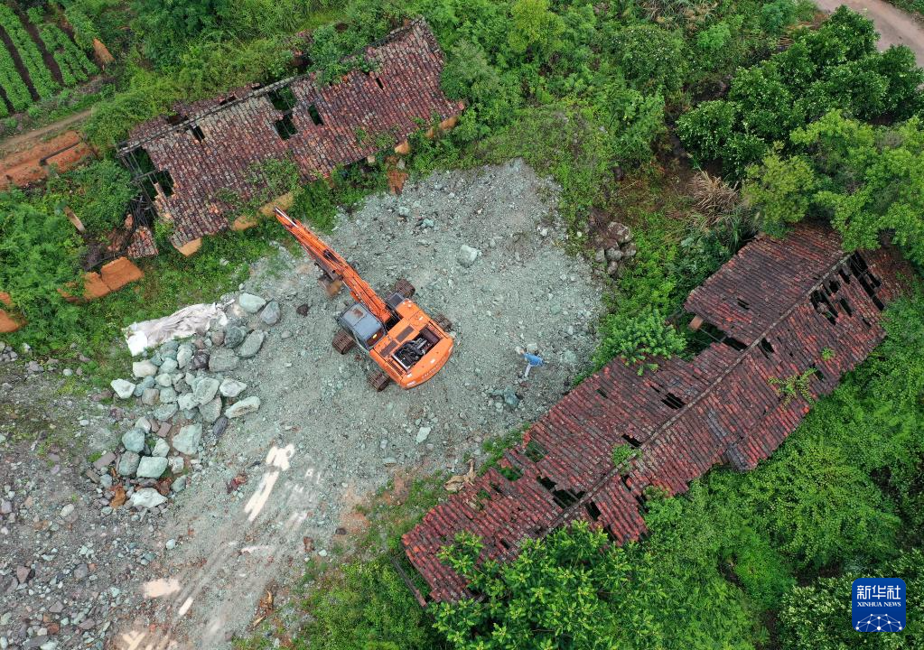 6月8日,劉法星在松陽縣一處古龍窯遺址間的礦堆中尋找用來配釉的礦石(無人機照片)。