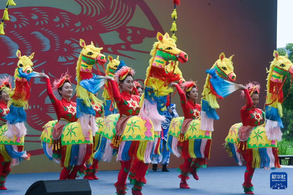 6月9日,活動現場舉行的非遺表演——臨平竹馬。
