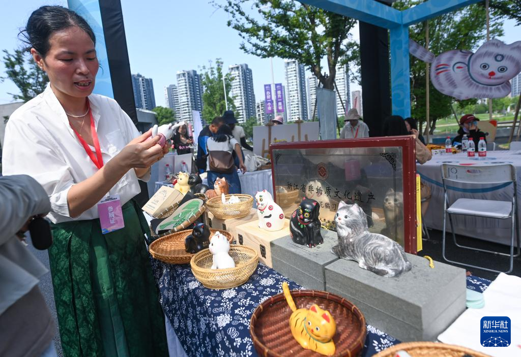 6月9日,活動現場展示的浙江省非物質文化遺產——半山泥貓。