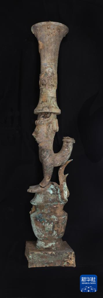 這是銅罍座倒立鳥足頂尊神像相對完整形態。