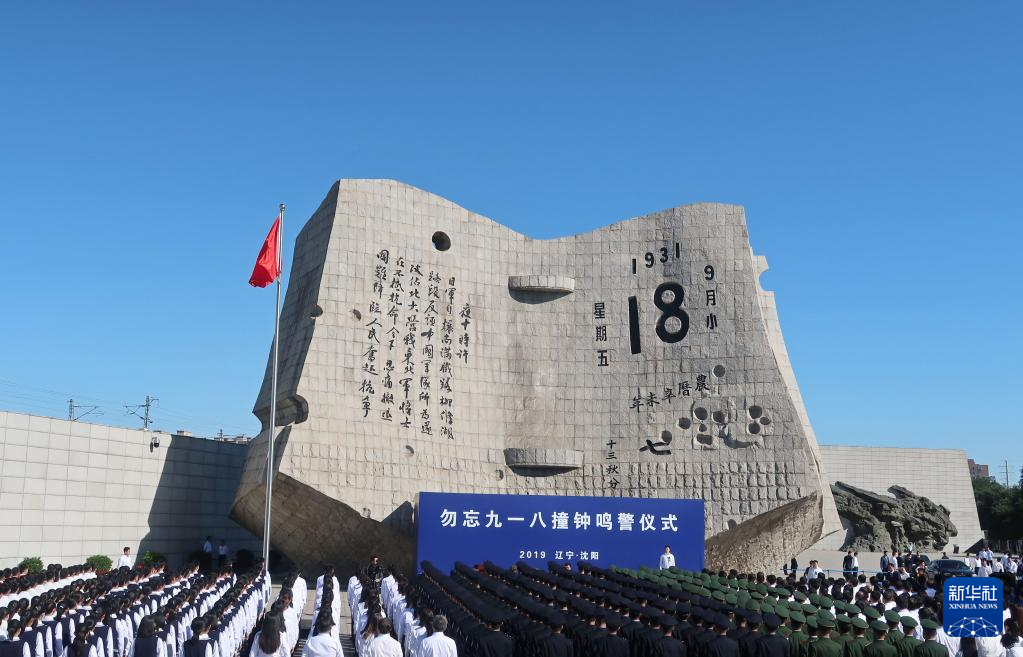 這是2019年9月18日拍攝的“勿忘九一八”撞鐘鳴警儀式現場。