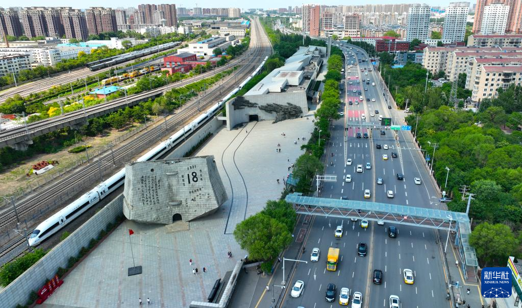 2023年6月6日,高鐵列車從沈陽“九一八”歷史博物館旁邊經過。