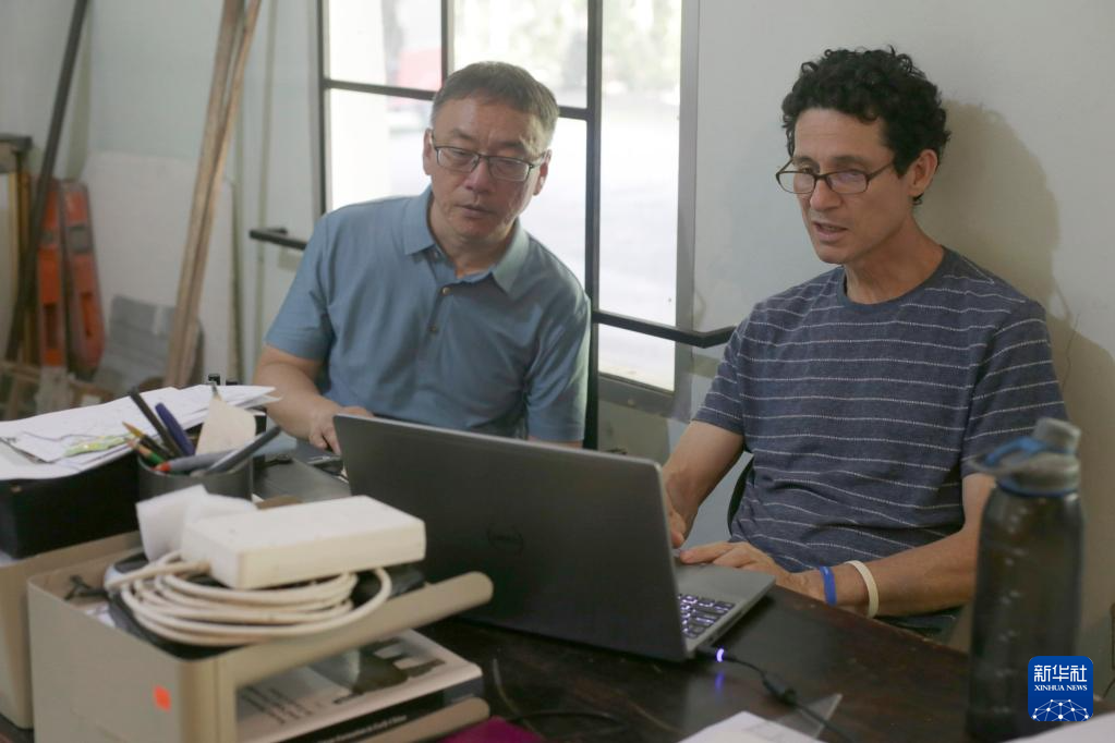6月8日,在洪都拉斯科潘瑪雅遺址中洪聯合考古隊辦公室,中國社科院考古研究所“瑪雅文明中心科潘遺址考古及中美洲文明研究”項目中方負責人李新偉(左)與洪方負責人拉莫斯交談。新華社發(盧西奧·塔沃拉攝)