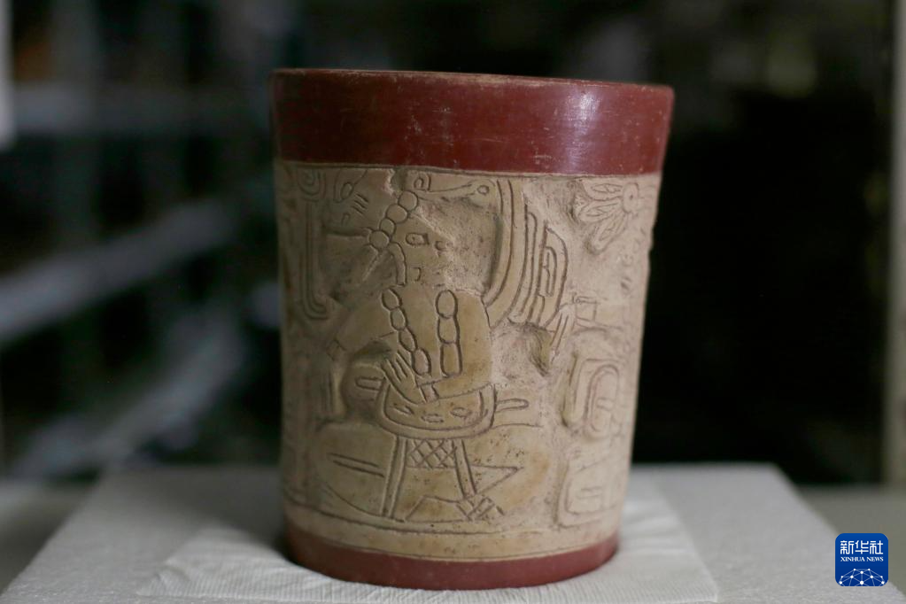 這是6月8日在洪都拉斯科潘瑪雅遺址國際考古隊倉庫內拍攝的由中洪聯合考古隊發掘出的陶器文物。新華社發(盧西奧·塔沃拉攝)