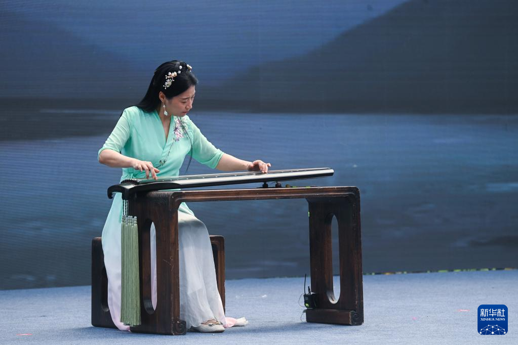 6月9日,2023年“文化和自然遺產日”杭州(拱墅)主場系列活動在杭州運河亞運體育公園開啟。這是現場舉行的浙派古琴表演。