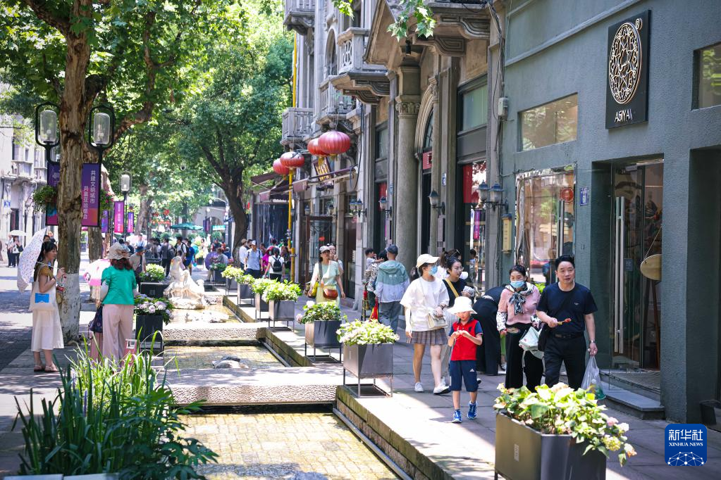 游客在南宋御街步行街游玩(6月10日攝)。