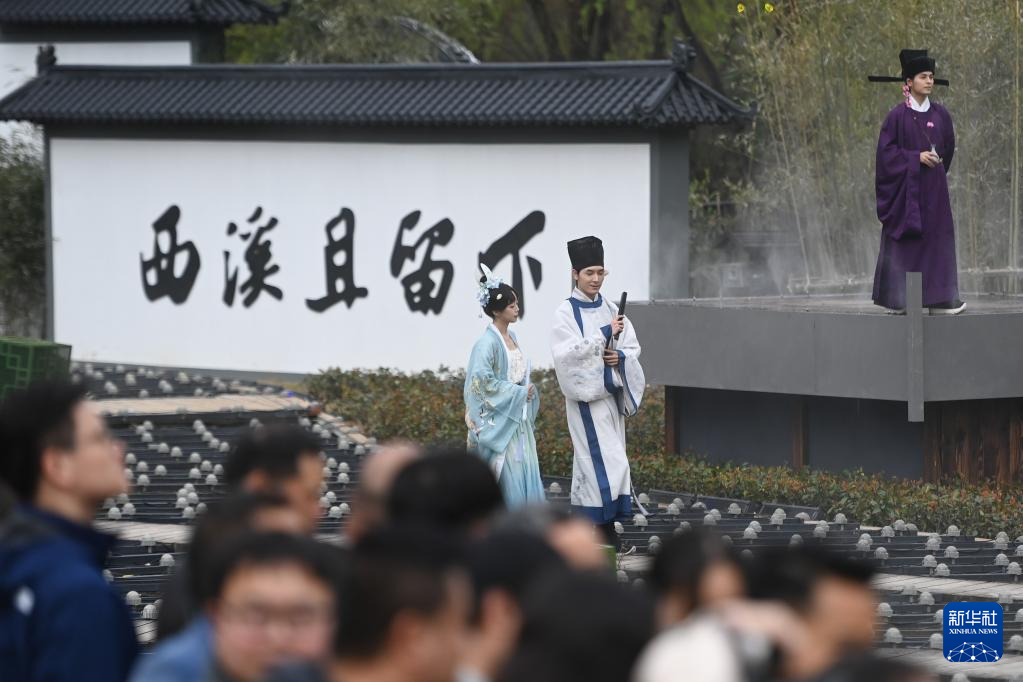 古裝愛好者在西溪濕地舉行的西溪花朝節“簪花大會”上表演(3月18日攝)。