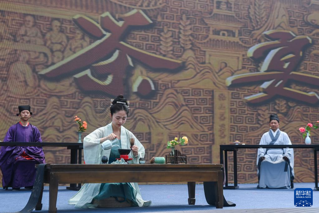 6月9日,2023年“文化和自然遺產日”杭州(拱墅)主場系列活動在杭州運河亞運體育公園開啟。這是活動現場舉行的入選國家級非物質文化遺產名錄的《徑山茶宴》展示。